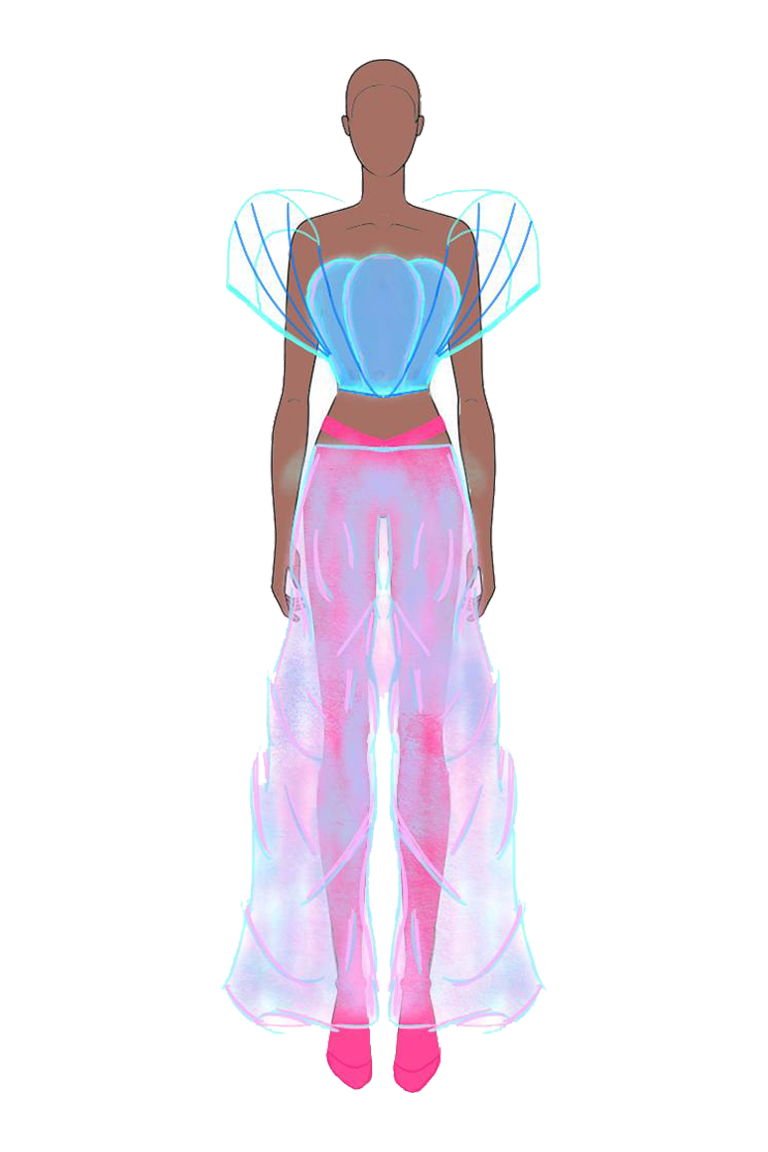 A coleção “Refração e Dispersão: Prisma” da Glass é uma imersão no universo futurista com toque urbano dramático. Silhuetas oversized, recortes assimétricos e transparências ganham vida em tecidos brilhosos e ousados, como organza e poliuretano metalizado. Em uma paleta vibrante que inclui azul royal, rosa pink e verde água, as peças traduzem autenticidade e inovação. Ideal para quem veste arte e busca destacar sua identidade através da moda..